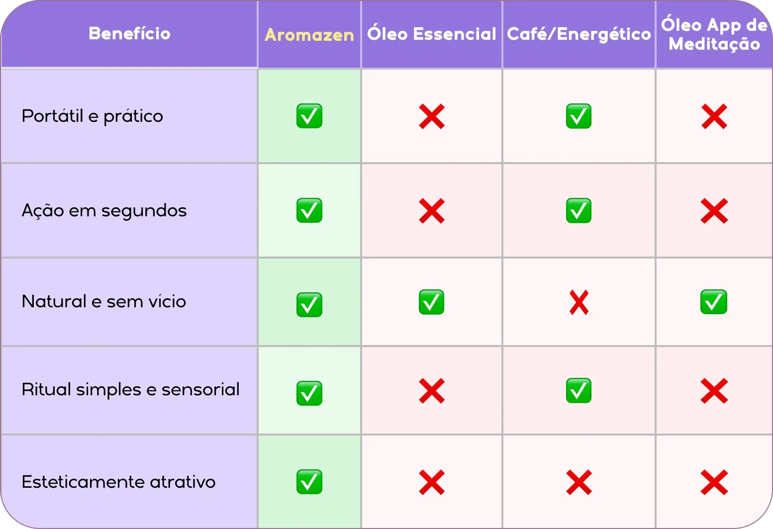 Com Aromazen, você leva foco, calma ou alegria no bolso — sem cafeína, sem complicação.